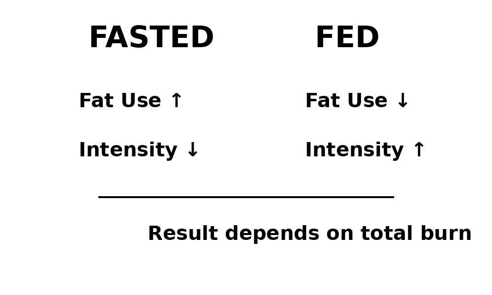 공복 상태에서는 지방 사용 비율이 높아질 수 있지만, 운동 강도가 낮아질 경우 총 에너지 소비량은 줄어들 수 있다.
